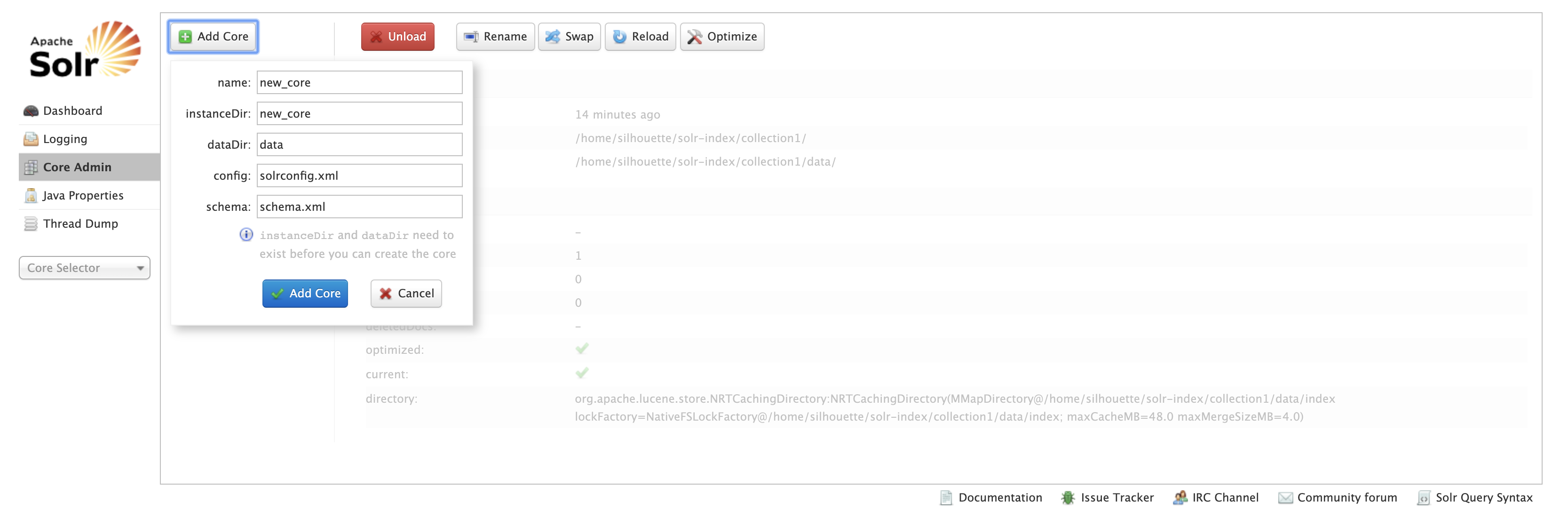 - dataDir:确认Add Core时,会在new_core目录下生成名为data的文件夹