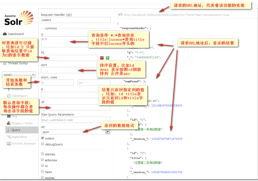@Test public void testQueryIndex() throws Exception{ //定义Solr的URL路径 String baseURL = "http://192.168.0.111:8080/solr/collection1"; //要使用SolrJ首先创建服务对象,Solr实际上是提供web服务,需啊哟创建web服务的对象,支持HTTP请求 HttpSolrServer server = new HttpSolrServer(baseURL); String query = "author:silhouette"; //进行查询操作 SolrParams params = new SolrQuery(query); QueryResponse queryResponse = server.query(params); List<Book> books = queryResponse.getBeans(Book.class); for (Book book : books) { System.out.println(book); } //提交请求 server.commit(); }注意:1.JavaBean的属性要和Solr界面管理展示的属性要一致,如果缺少字段则补上,如果属性不同,就修改JavaBean或者scheme.xml配置文件。