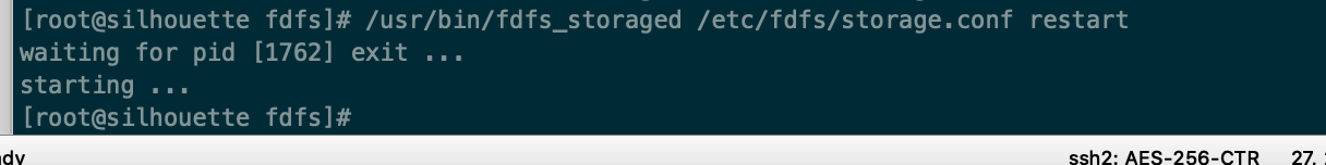 $ /usr/bin/fdfs_storaged /etc/fdfs/storage.conf restart # 设置开机自动启动 $ vim /etc/rc.d/rc.local ## 添加启动命令 /usr/bin/fdfs_storaged /etc/fdfs/storage.conf restart
