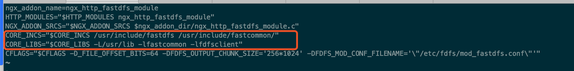 $ rz FastDFS-nginx-module_v1.16.tar.gz $ cd /home/silhouette $ tar -zxvf FastDFS-nginx-module_v1.16.tar.gz $ cd FastDFS-nginx-module/src $ vim conf # 修改config文件将/usr/local/路径改为/usr/