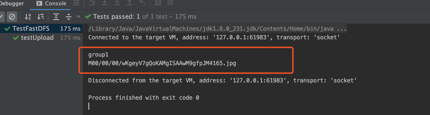 @Test public void testUploadByClient() throws Exception{ FastDFSClient client = new FastDFSClient( "/Users/silhouette/git_demo/egobuy/" + "egobuy-common/src/test/resources/client.conf"); String file = client .uploadFile( "/Users/silhouette/Pictures/pap.er/2019_06_16_18_36_IMG_4666.JPG"); System. out .println( file); }